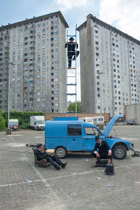 Tre clown in panne con la loro auto affrontano un viaggio grottesco e incerto, sospesi tra attese beckettiane e tempeste interiori. Una favola dell’assurdo, comica e umanissima, che racconta l’arte di restare curiosi anche quando tutto sembra sfuggire. Un’esplorazione clownesca dell’erranza, dello sconosciuto et del destino.