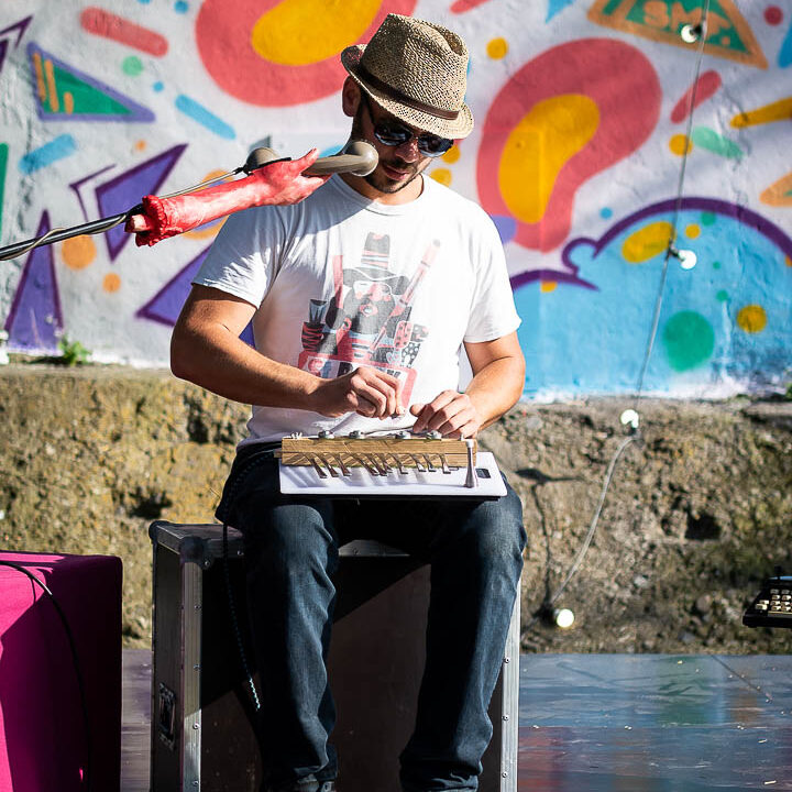 Inarrestabile one-man-band che suona esclusivamente strumenti costruiti con materiali di riciclo e oggetti comuni.. che niente hanno a che fare apparentemente con la musica!